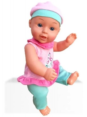 La bebita viene con un exclusivo vestido moderno de color rosado